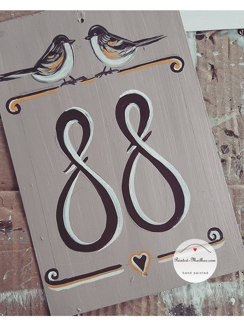 Maľovanė číslo domu na oceľovom plechu 20x30cm. Číslo namaľujem v rovnakom dekore ako je schránka. Prispôsobím farebnosť, kompozíciu....a pod. Na foto je rozpracovaný stav. Na záver dávam ešte exteriérový lak pre lepšiu ochranu povrchu a ceruzku samozrejme vygumujem. : )