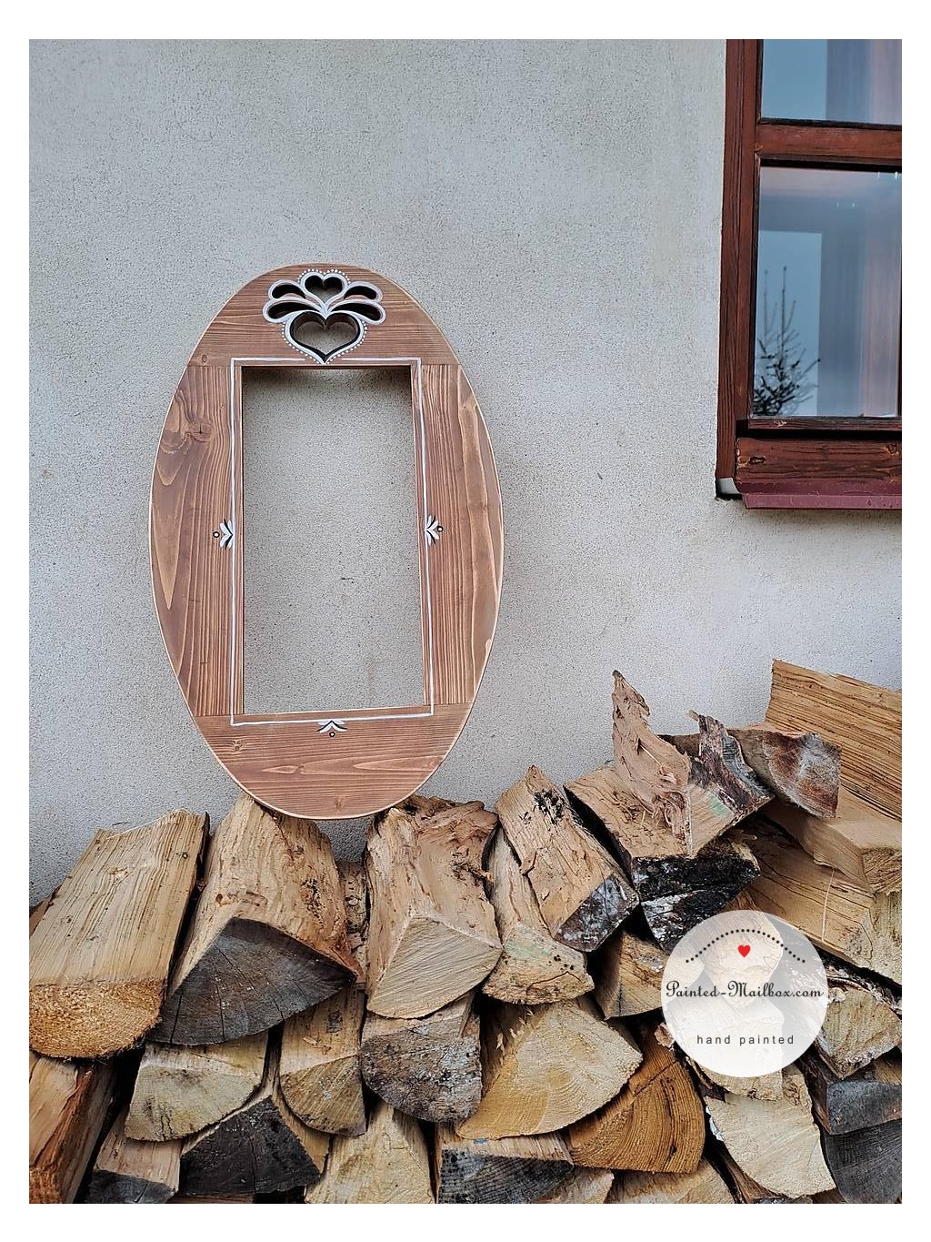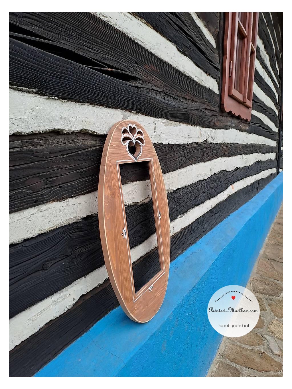 Rozmer samotného zrkadla je 200 x 400mm plus drevený oválny rám.