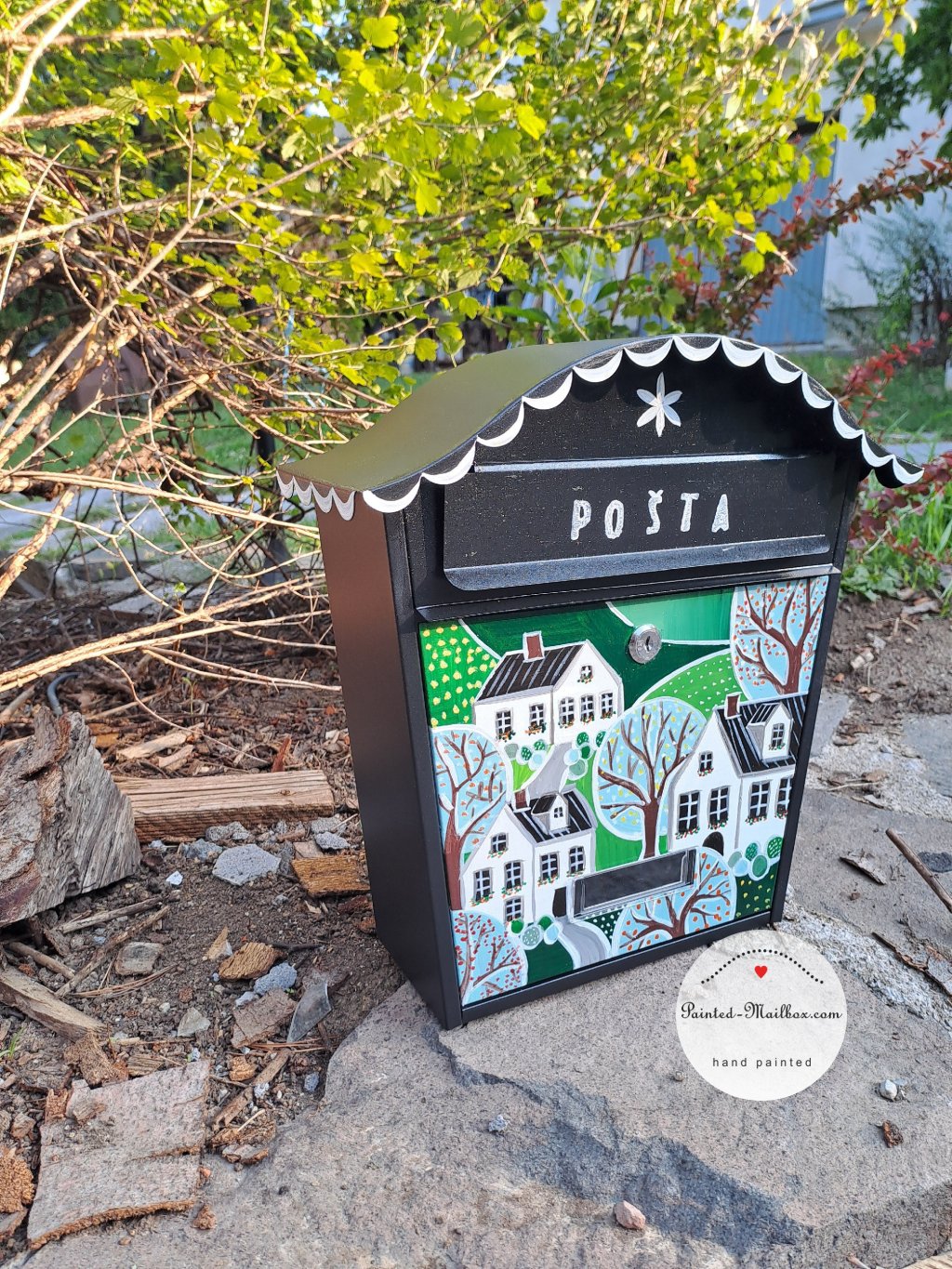 Ručne maľovaná poštová schránka – darček, ktorý spája krásu, umenie a funkčnosť. Prekvapte priateľov, rodinu, mladomanželov niečím výnimočným, čo im bude každý deň pripomínať ich lásku a spoločný život. Objednajte si tú svoju ešte dnes a vychutnajte si radosť, ktorú prinesie! Moje ručne maľované poštové schránky sú dokonalou kombináciou funkčnosti a umenia. Každá schránka je starostlivo vytvorená a ručne maľovaná, čím sa stáva jedinečným kúskom, ktorý prinesie vášmu domovu osobitý štýl a bude Vás tešiť pri príchode domov.