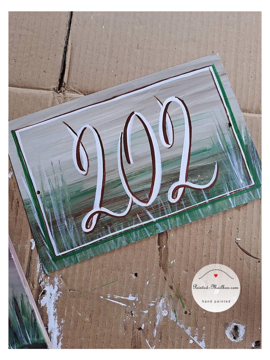 - Číslo domu v rovnakom dizajne: V rovnakom štýle ako schránka Vám namaľujem aj číslo domu, na plechovú tabuľku v rozmere 20x30cm.