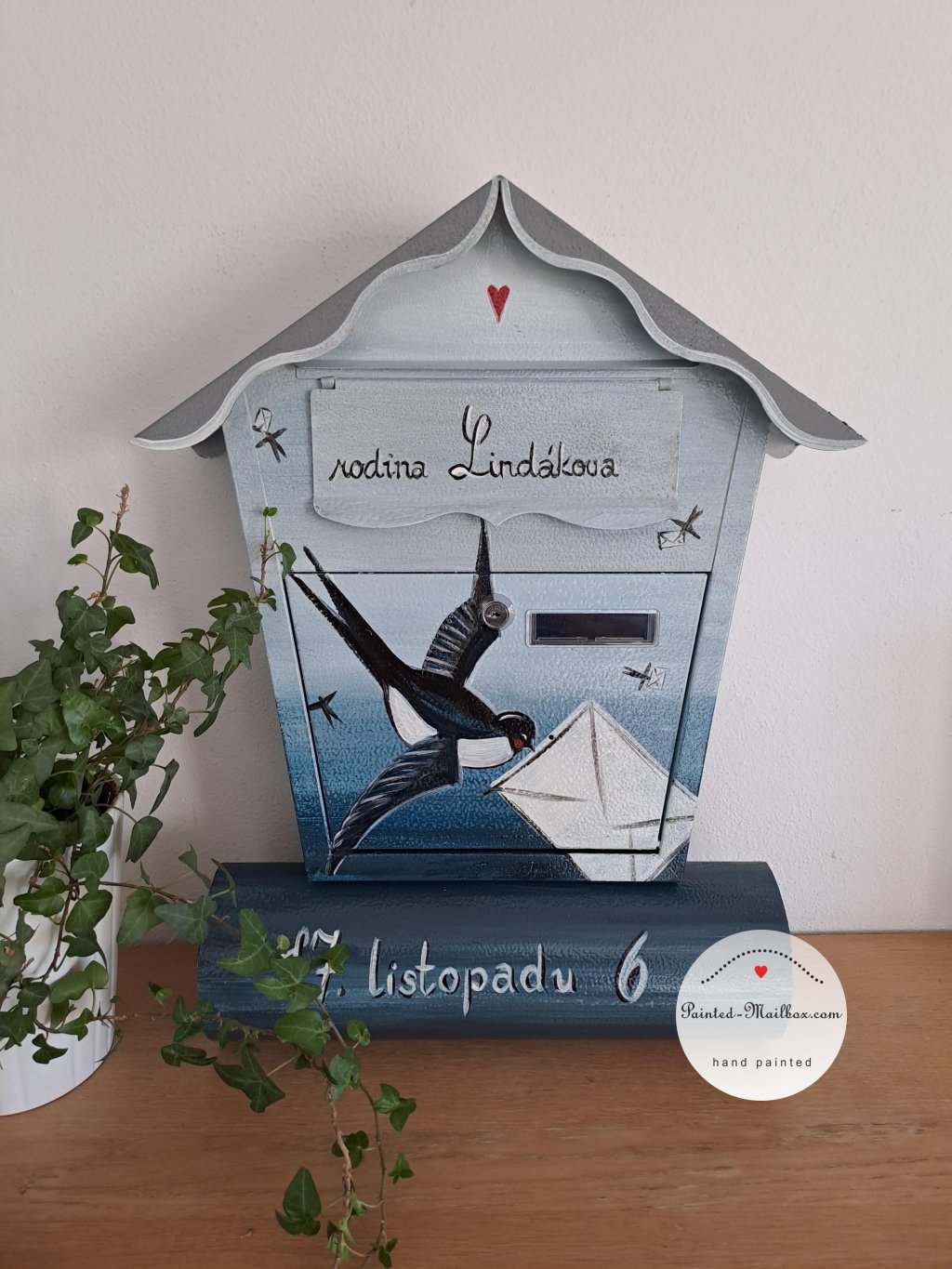 Maľovaná poštová schránka - lastovička 043