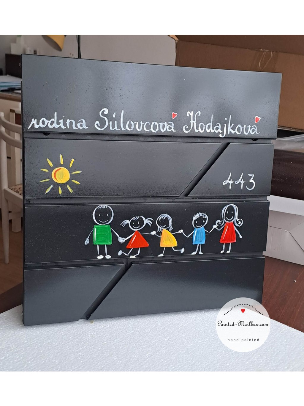 - Číslo domu v rovnakom dizajne: V rovnakom štýle ako schránka Vám namaľujem aj číslo domu, na plechovú tabuľku v rozmere 20x30cm.