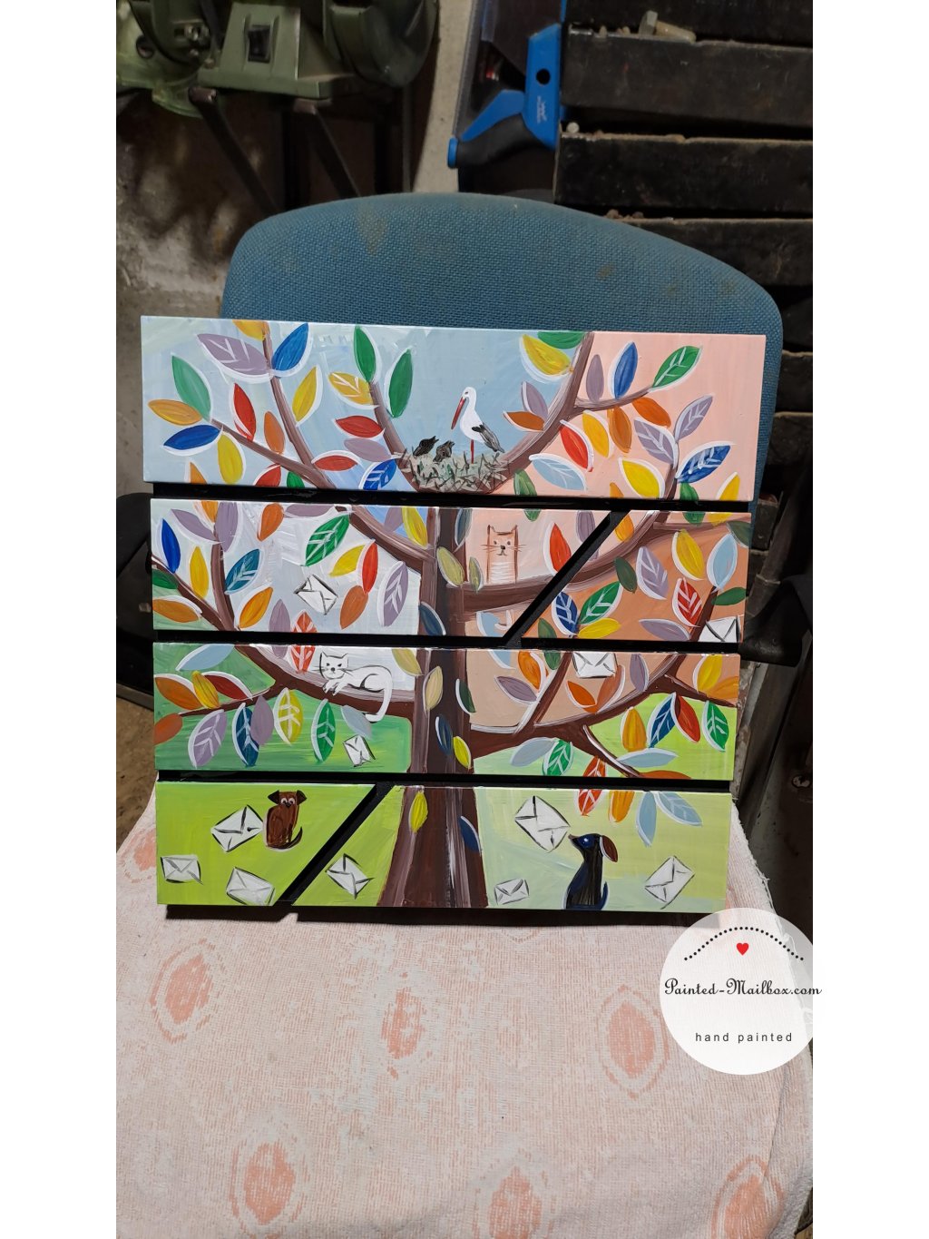 Maľovaná schránka - farebný strom 016