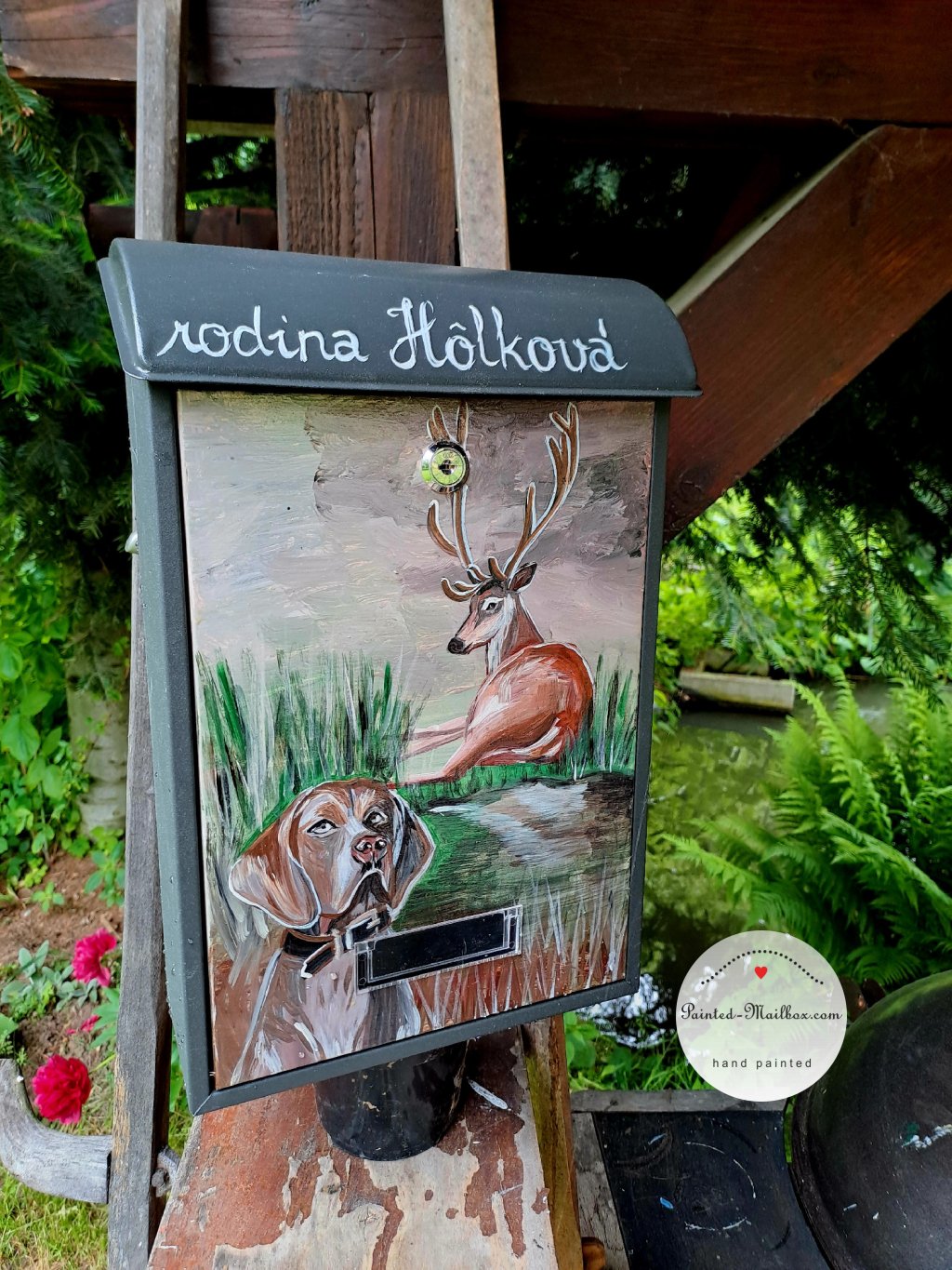 Maľovaná schránka - jeleň a pes